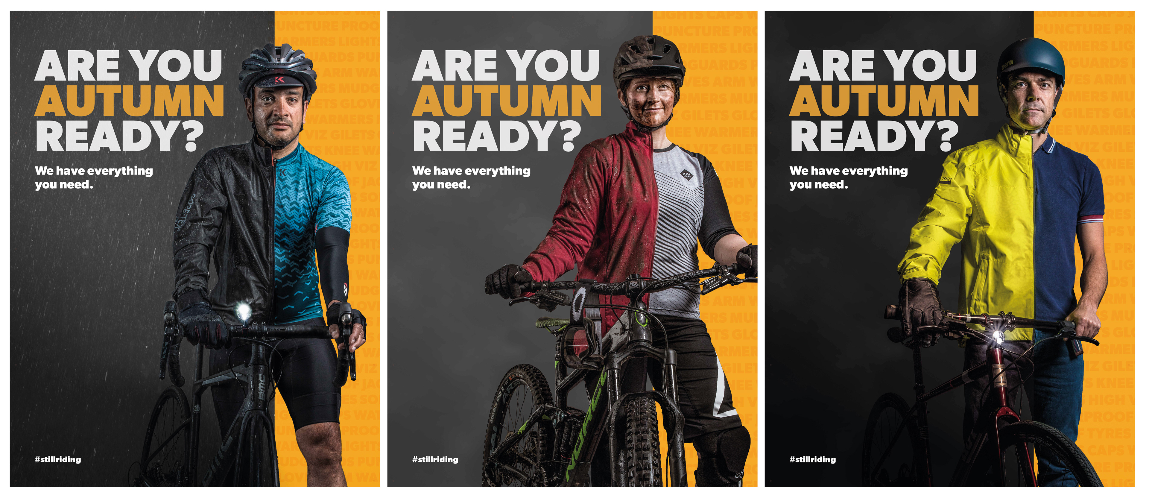 This autumn campaign for Evans Cycles was to effectively communicate the impact of the changing season on cyclists’ clothing and accessories choices, emphasizing the importance of appropriate gear to enhance comfort, performance, and safety during autumn rides.